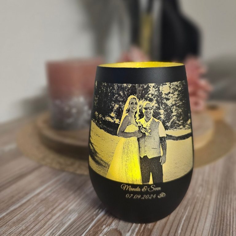 Unsere Windlichter können ebenfalls Ihren Wünschen entsprechend personalisiert und gestaltet werden. Es kann ein Schriftzug oder ein Bild graviert werden.